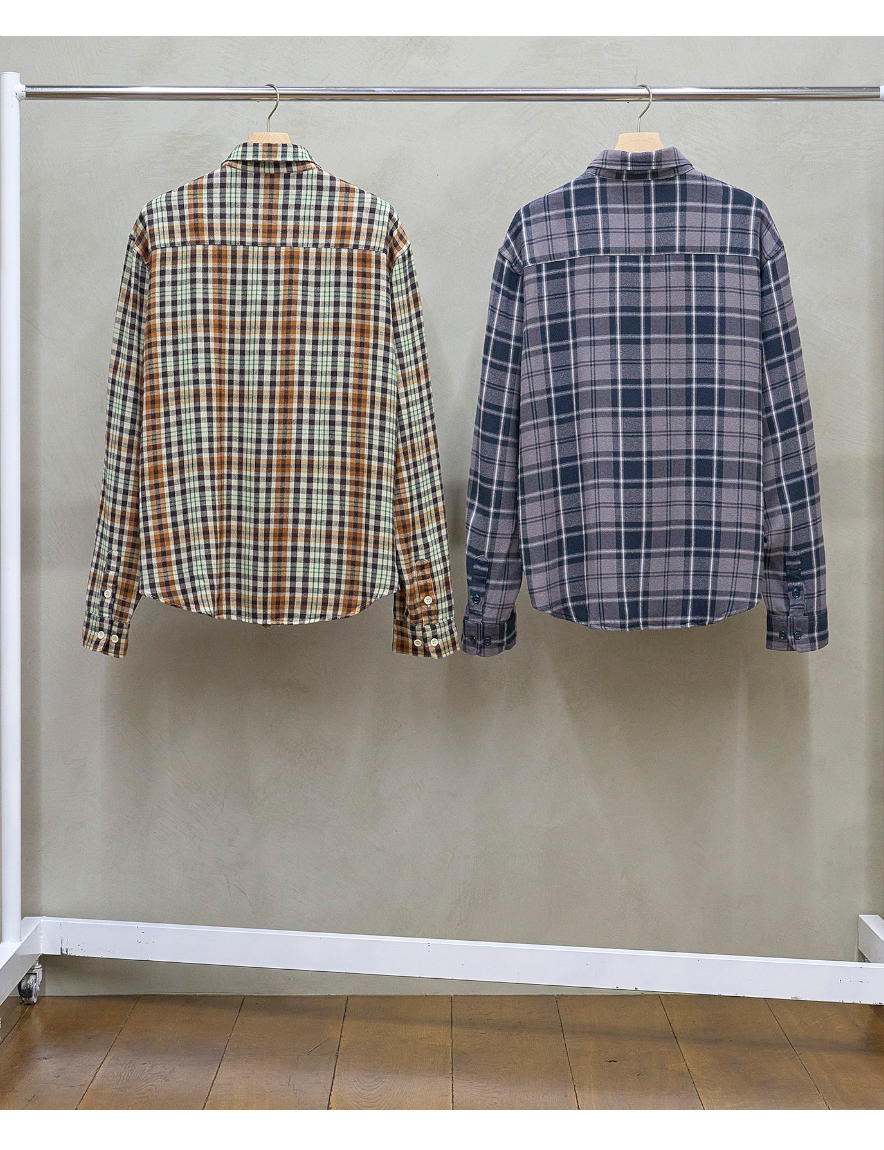 SandWaterr - RESEARCHED WORK SHIRT / COTTON FLANNEL CHECK (TAUPE)