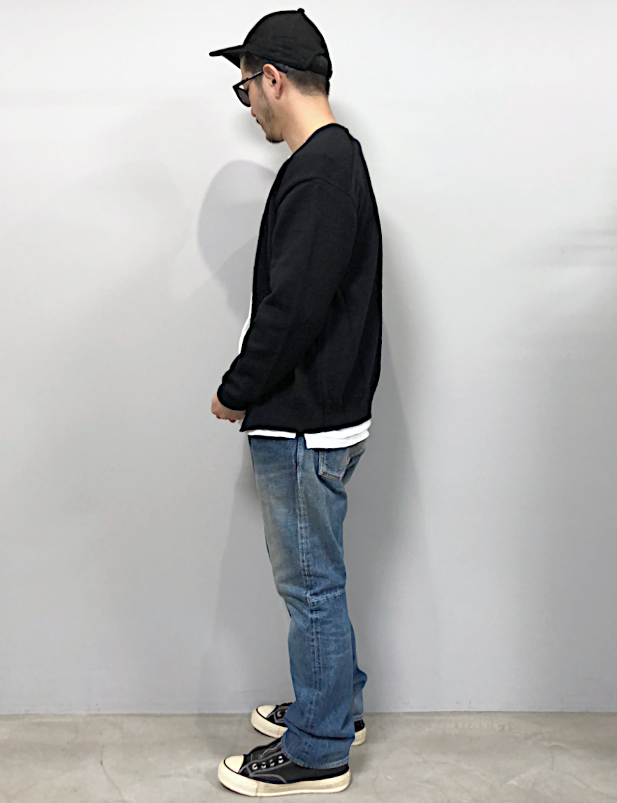 UNUSED - 7G Wool knit cardigan (BLACK)